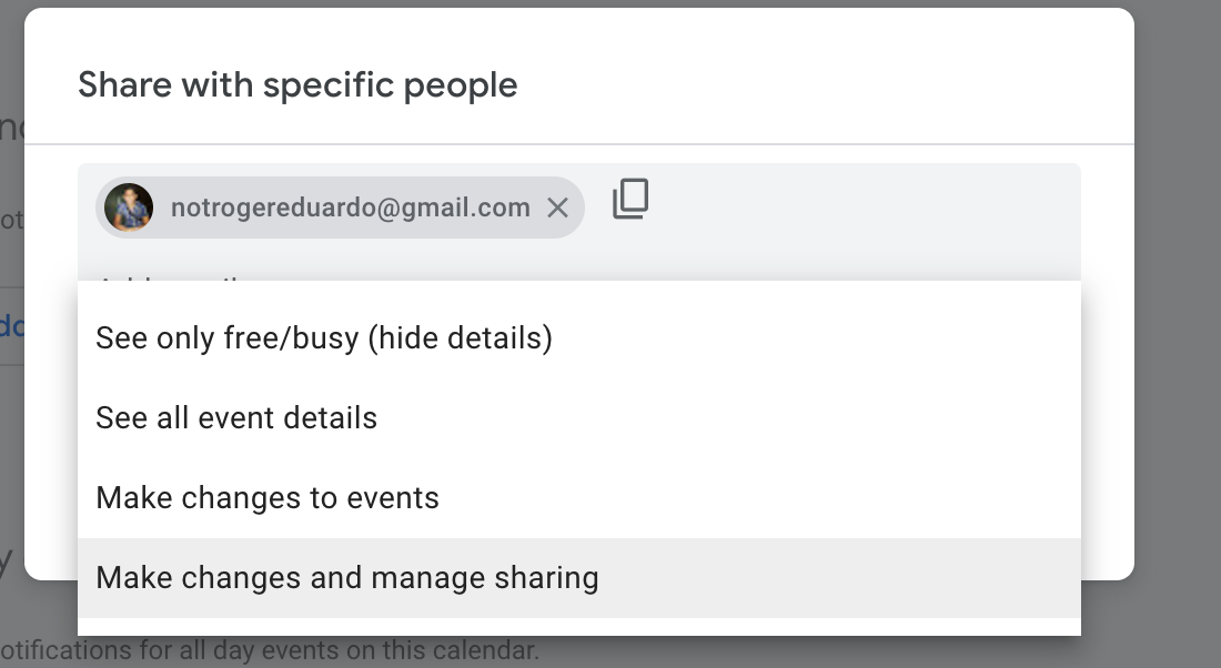 After setting the permission level, they will receive an email notification informing them about the new changes on Google Calendar.