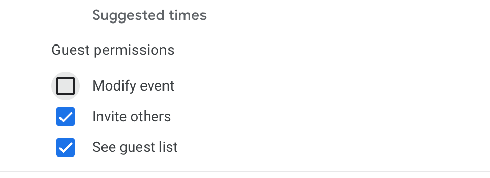 However, if an attendee is granted “Modify Event” permissions prior to the creation of the event, they will be able to add guests, change hours, and more, of that specific event.